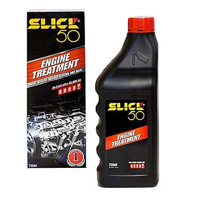 SLICK 50 Engine Treatment je směsí PTFE (polytetrafluoretylenu), ropné frakce a speciálních mazacích aditiv. Nosným olejem tohoto výrobku je špičkový polosyntetický motorový olej viskozitní třídy SAE 15W/40, který splňuje a překračuje požadavky klasifikace API SM/CF a ACEA A3/B3.
