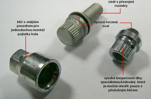 SICURIT pojistné šrouby M14x1,25x28 kužel, klíč 17