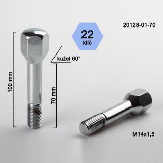Šroub M14x1,5x70 kužel chrom (Ferrari, Maserati), výška 100