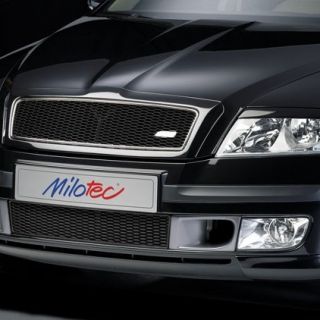 Milotec mřížka nárazníku s bočním sáním - ABS stříbrný matný, mřížka - černá, Škoda Octavia II