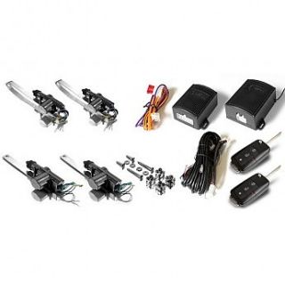 2ks řídící jednotky, 2 ks pětivodičové servo, 2 ks dvojvodičové servo, sada táhel, spojovací materiál, kabeláž pro 4-dveře vozidla.