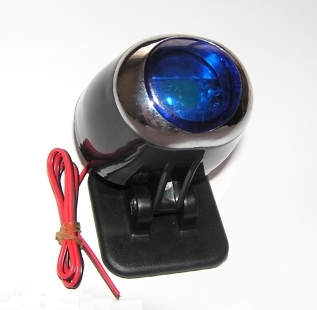 Světlo se stroboskopickým efektem, oválné, barva modrá, 12V. Připevnění oboustrannou samolepící páskou.