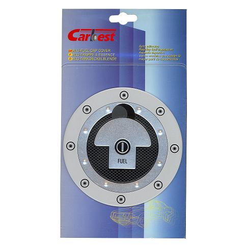 Samolepící hliníkový ozdobný kryt, určený k nalepení na víčko palivové nádrže automobilu, průměr 132 mm