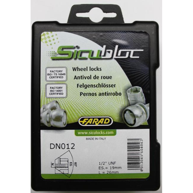 Bezpečnostní matice SICUBLOC, rozměr 1/2 UNF, dosedací plocha kužel 60°, výška matice 34mm, hlava klíče 19mm, cena uvedena za sadu (4 ks).