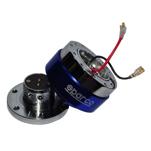 Výcvakávající mezikus mezi sportovním volantem a klasickou sportovní nábou, pasuje pro všechny volanty se šesti otvory (Sparco, Momo, OMP..). Propojení pro klakson zůstává zachováno. Ideální pro motorsport a také jako ochrana před zloději. Lehce vyjmutelný volant, stejný princip jako u F-1.
