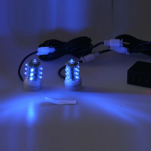 Přídavné modré výstražné LED stroboskopy, 3 režimy vystražného problikávání, napájecí napětí 12V, vysoce svítivé LED diody SUPERFLUX (v každém světle 13 diod), minimální odběr proudu (cca 150 mA), průměr montážního otvoru 27mm, hloubka 45mm, životnost až 100 000 hodin.