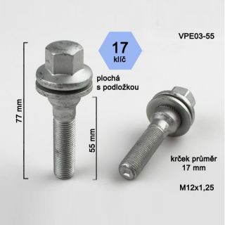 Kolové šrouby M12x1,25x55, ploché s podložkou, 1 ks