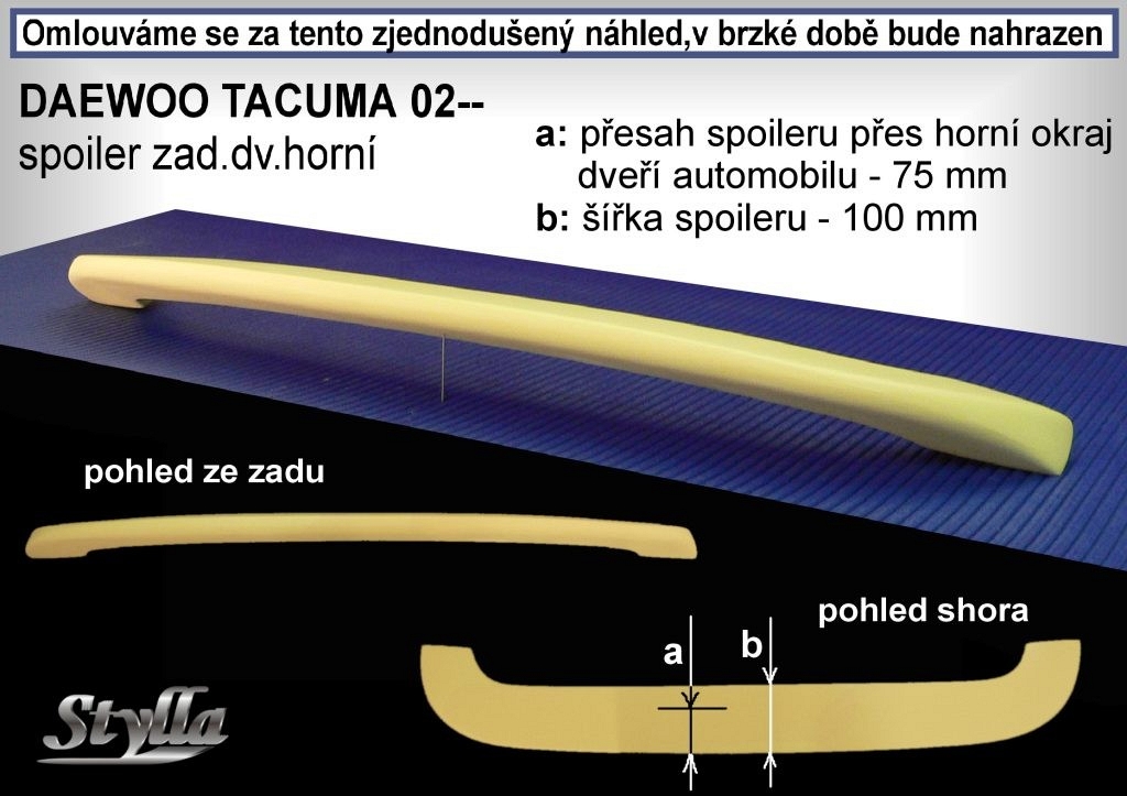 Česká firma zabývající se výrobou laminátových křídel značky STYLLA uvedla na trh zcela nový sortiment zadních spoilerů a spoilerů na optické prodloužení střechy, které viditělně změní vzhled vašeho vozu. V nabídce je více jak 130 nových křídel a spoilerů na všechny typy automobilů.