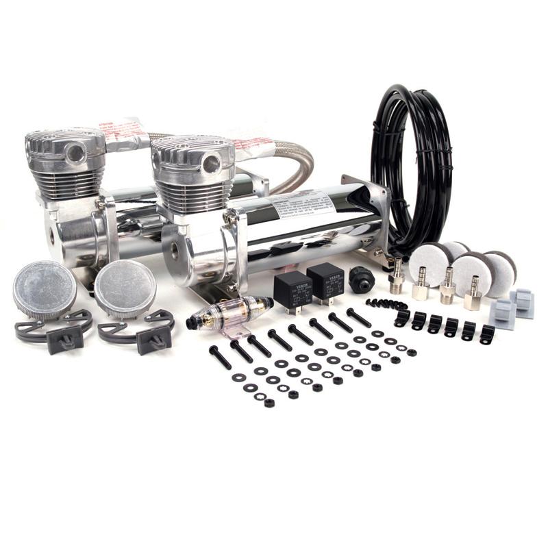 Cenově zvýhodněné dvojité balení kompresorů VIAIR pro použití v systémech vzduchových podvozků. Model 480C je vrcholovým modelem v nabídce VIAIR se 100% pracovním cyklem při tlaku 100PSI (6,895bar) a s maximálním produkovaným tlakem 200PSI (13,79bar). Kompresory jsou vyvedeny v celochromovém provedení.