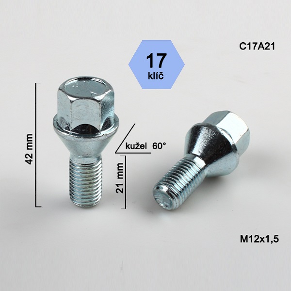Šroub M12x1,5x21 kužel, klíč 17, výška 42