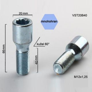 Šroub M12x1,25x40 kužel s vnitřním mnohohranem, průměr hlavy 20mm, výška 66