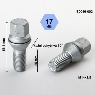 Šroub M14x1,5x25 kužel, pohyblivá, klíč 17, výška 56,5 mm