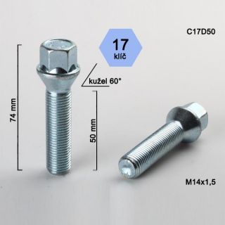 Šroub M14x1,5x50 kužel, klíč 17; výška 74