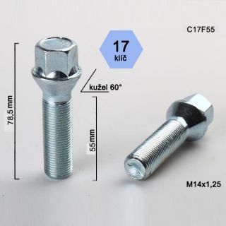 Šroub M14x1,25x55 kužel, klíč 17; výška 78,5