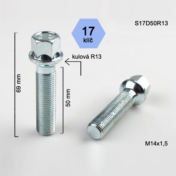 Šroub M14x1,5x50 koule R13, klíč 17, výška 69
