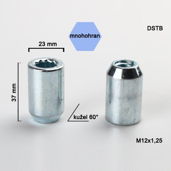 Matice M12x1,25 kužel s vnitřním mnohohranem; výška 37, vnější průměr 23