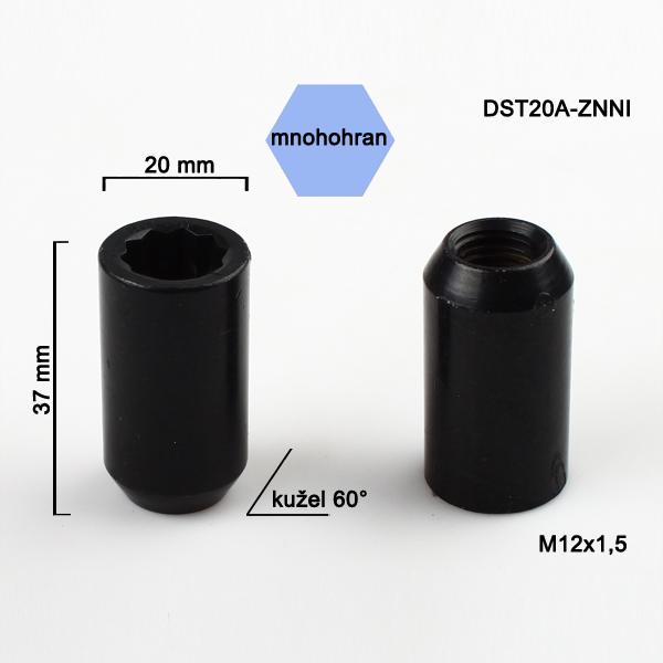 Matice M12x1,5 kužel s vnitřním mnohohr., černé; výška 37, vnější průměr 20
