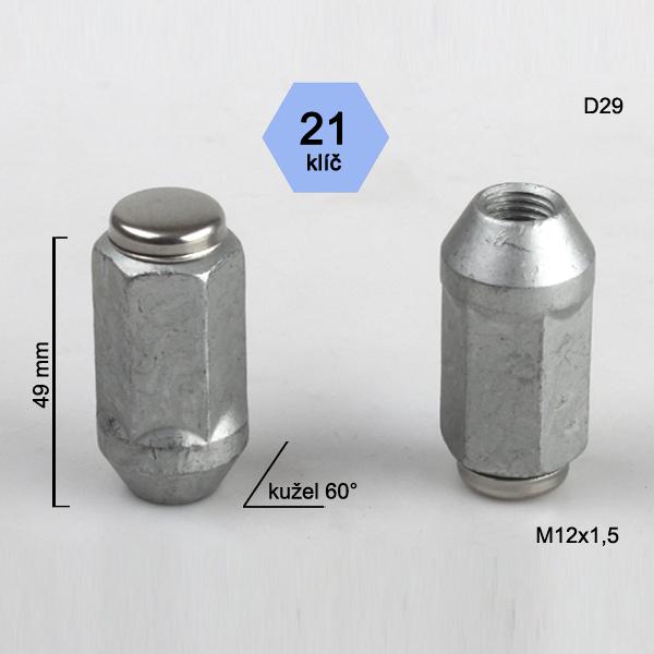Matice M12x1,5 kužel, prodloužená dacromet (nerez víčko), klíč 21, výška 49