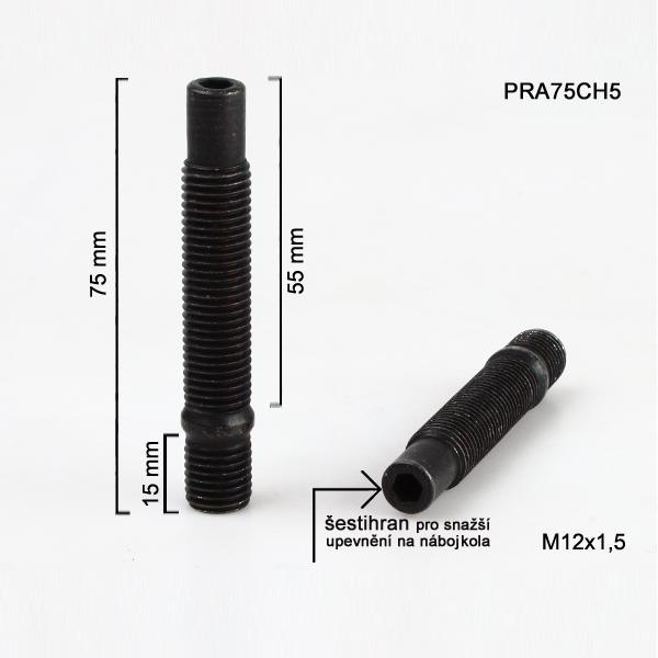 Šteft (svorník) M12x1,5x55+15 oboustranný závit, černý, celková délka 75