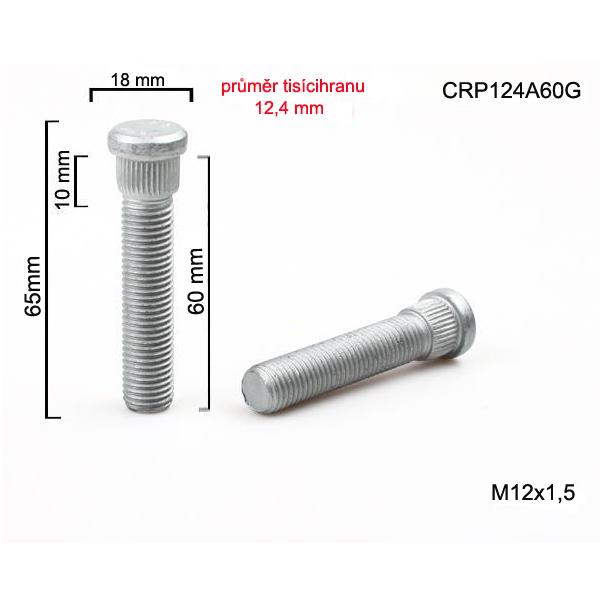 Šteft (svorník) M12x1,5x60 tisícihran průměr 12,4mm