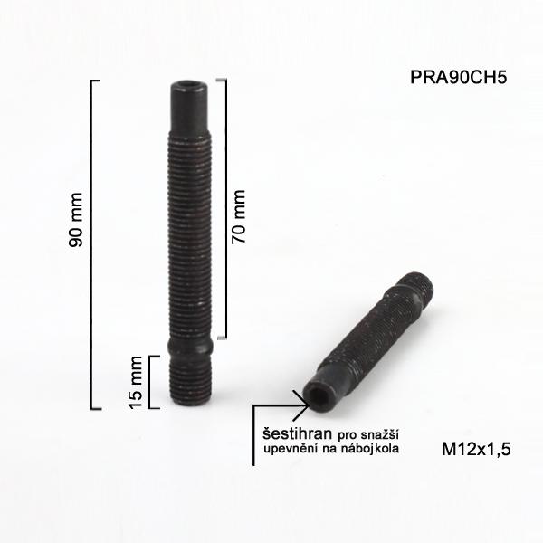 Šteft (svorník) M12x1,5x70+15 oboustranný závit, černý, celková délka 90