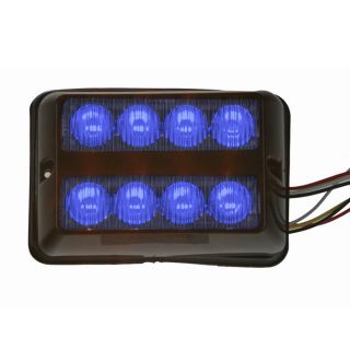 Přídavné modré výstražné LED světlo pro externí povrchovou montáž, napájecí napětí 12V, 8x vysoce výkonné LED diody 1W 3.generace, minimální odběr proudu, 18 různých přednastavených programů pro blikání, synchronizace s dalšími LED světly, odolná konstrukce chránící proti vlhkosti a otřesům, životnost až 100 000 hodin. Zapojení: Rudý +12V, Černý -12V, žlutým vodičem se mění typ blikání (na +12V)