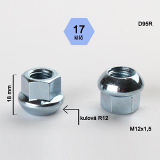 Matice M12x1,5 koule R12 otevřená, klíč 17, výška 18