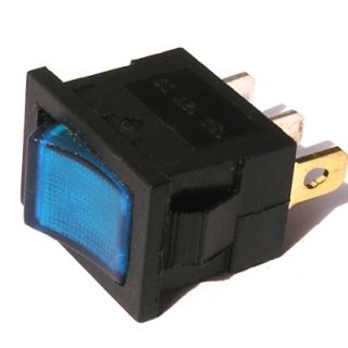 Přepínač podsvětlený, 2x2,5 cm,hranatý, barva modrá, 12V, 15A. Je to universální přepínač pro mlhová světla, dálková světla, neony, stroboskopy, LED světla...
