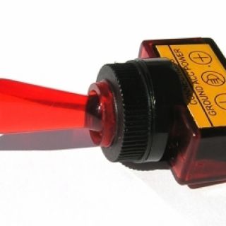Přepínač podsvětlený, pákový, 6x2,5 cm, barva červená, 12V, 15A. Je to universální přepínač pro mlhová světla, dálková světla, neony, stroboskopy, LED světla...