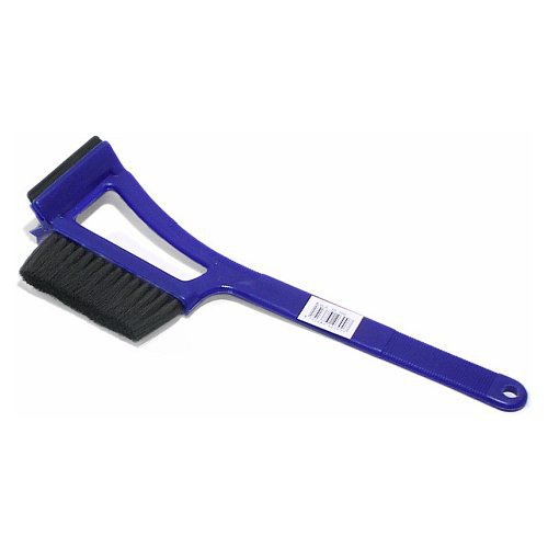 Plastová škrabka s košťátkem, gumovým a plastovým břitem, modrá barva.