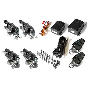 2ks řídící jednotky, 2x ovladač, 2 ks pětivodičové servo , 2 ks dvojvodičové servo, sada táhel, spojovací materiál, kabeláž pro 4-dveře vozidla