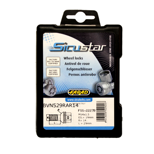 Pojistné systémy FARAD si zakládají na dodržování nejvyšších standartů kvality. I proto 35leté zkušenosti společnosti FARAD důveřuje více než 25 významných výrobců automobilů. Pojistné šrouby a matice SICUSTAR mají nejbezpečnější pojistný systém z celé nabídky. Díky odolnosti vůči zkroucení vyšší než 400Nm nemůže být rotační objímka násilím odstraněna a hlavice šroubu odolá jakémukoliv pokusu o zničení.